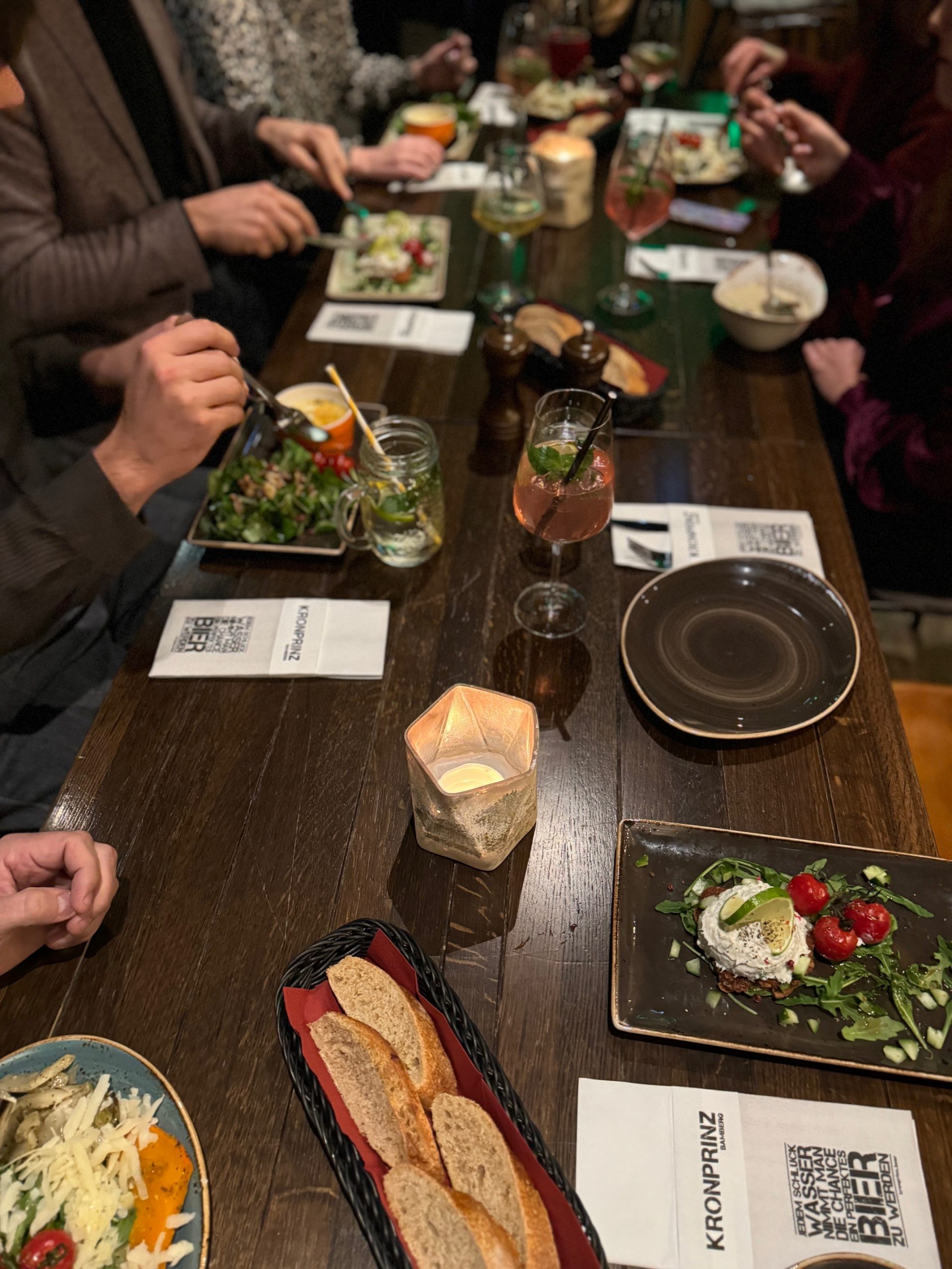 Bei unserer Weihnachtsfeier am 21. November 2024 ließ sich unser Team im Kronprinz Bamberg kulinarisch verwöhnen. Diesmal wählten wir den Kronprinz Bamberg als Stätte für unsere Weihnachtsfeier. Mit leckeren Vorspeisen, Hauptgang, Nachtisch sowie ausgewählten Cocktails stimmten wir uns auf die bevorstehende Weihnachtszeit ein.